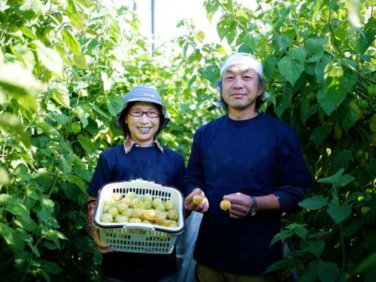 軽井沢から約40分ほど、望月という地域で農業をする「百笑農房ひゃくしょうのうぼう」さんは、食用ほうずき「オレンジチェリー」栽培のスペシャリストです。