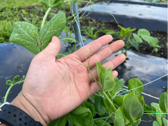 なんとも目を引く名前のこの野菜は、エンドウ豆の新芽です。長さは1本が10センチほどと小さなうちに収穫し食べます。やわらかい葉っぱと曲線が美しいヒゲの部分は、小さいながらも食べた時の風味はしっかり「お豆」です。サラダなど生のまま食べます。希少な野菜です。